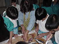 | 白浜のおばあちゃんにアジの開き方を教えていただきました。 | なかなか難しいですね。 | |